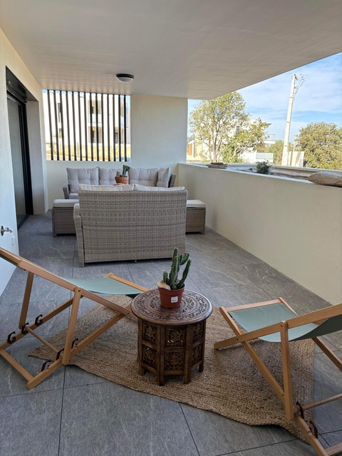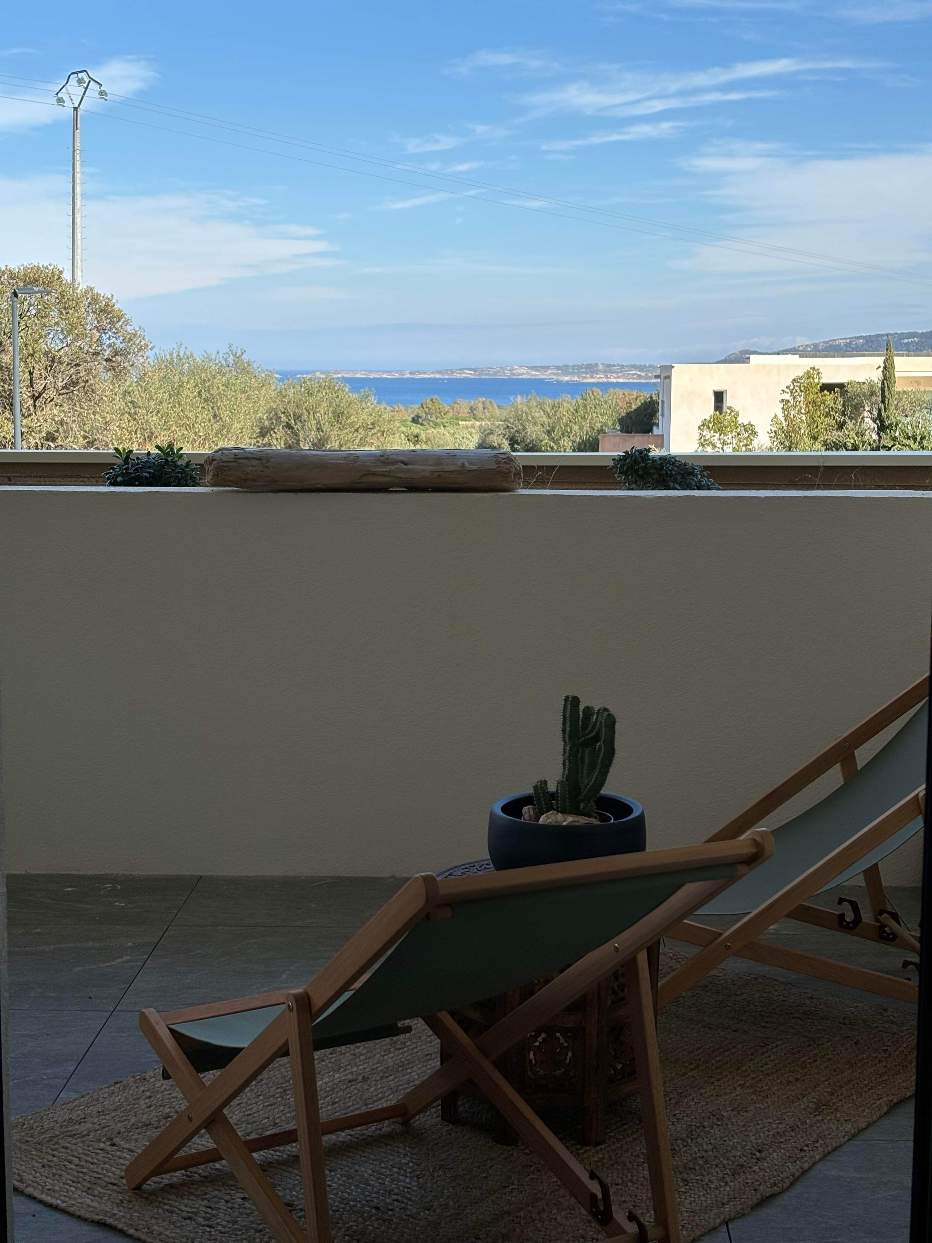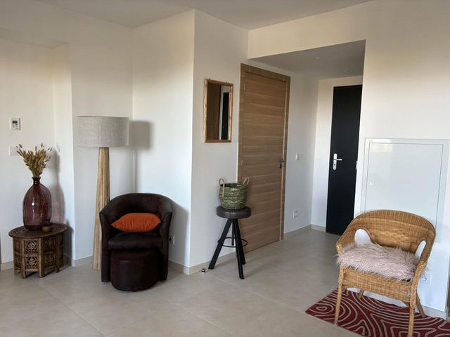 La pièce maîtresse de cet appartement est sans conteste sa grande terrasse aménagée, où vous pourrez savourer vos repas en plein air tout en admirant la vue sur la mer. Que ce soit pour un petit-déjeuner ensoleillé ou un dîner sous les étoiles, cet espace extérieur sera le cadre idéal pour des moments de convivialité en famille ou entre amis.La cuisine ouverte, entièrement équipée, vous permettra de préparer de délicieux repas avec facilité et confort. Vous y trouverez tout le nécessaire pour satisfaire vos envies culinaires.